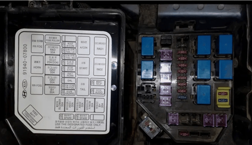 Bảo vệ các mạch điện liên quan đến đèn pha, đèn cốt, đèn hậu, đèn phanh, đèn xi-nhan, đèn sương mù và đèn trong xe. - Cầu chì hệ thống khởi động và đánh lửa